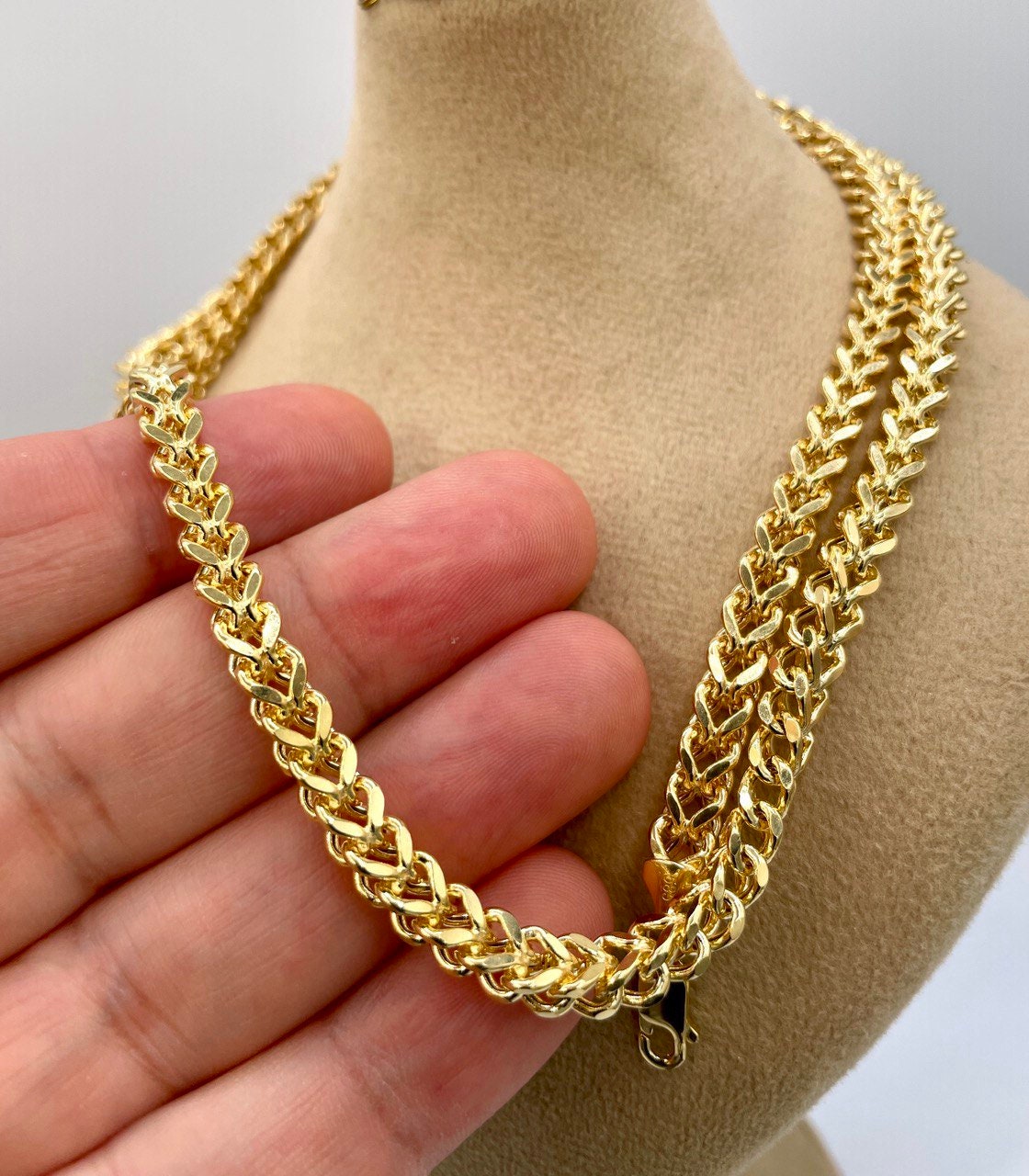 14K Solid Gold Franco Chain Necklace,Real 14K Gold Wheat Foxtail Chain, 5.5mm_20 to 26 inches Solid Gold Chain for Him/Her,Birthday Gift!