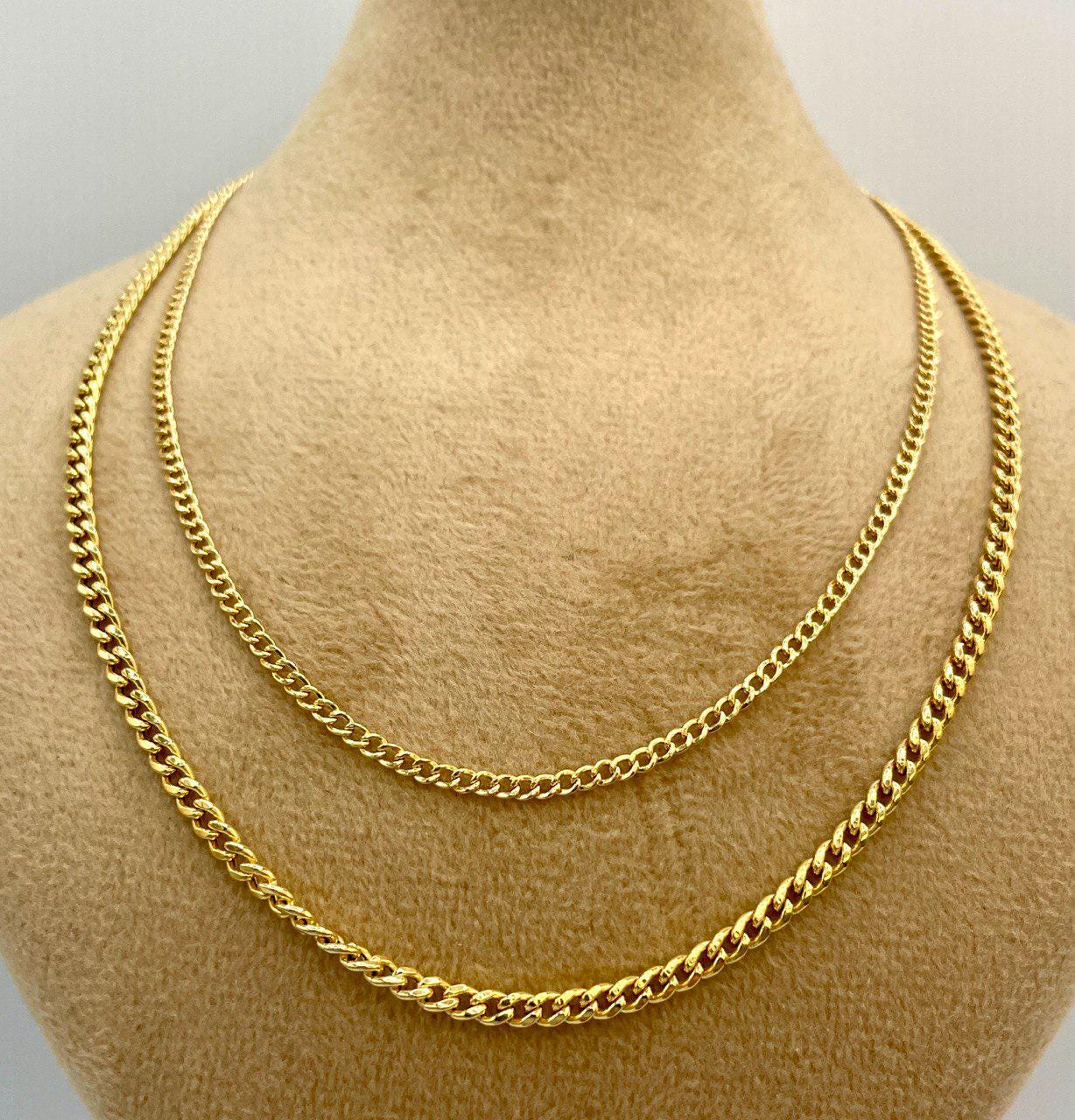 14K Gold Curb Chain Necklace,(2mm&2.5mm Width),Real Gold Necklace Chain, Gift For Her/Him!
