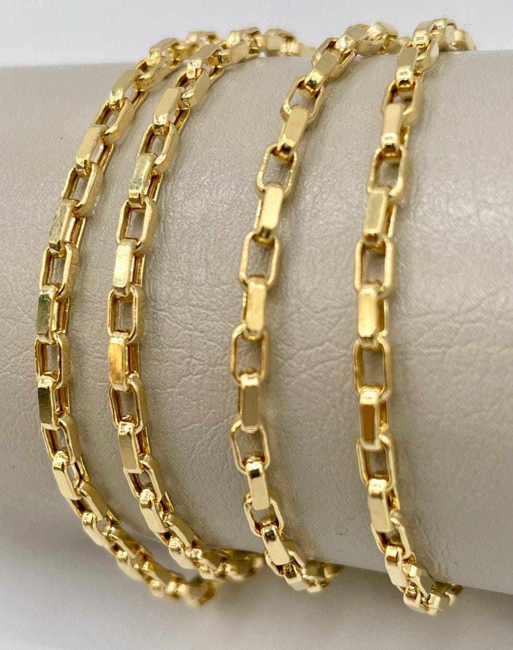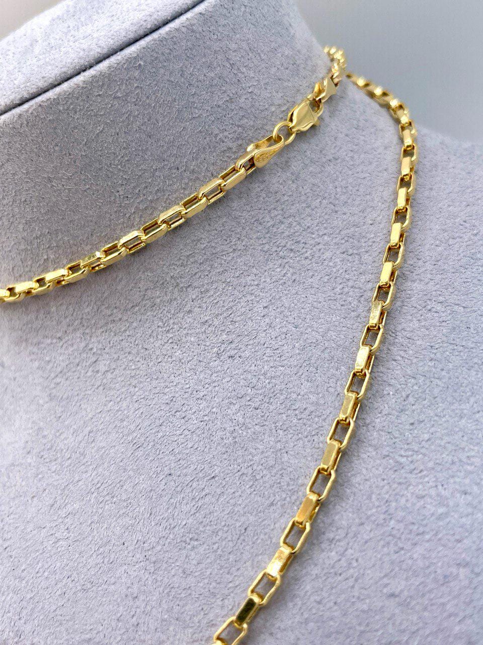 14K Solid Gold Box Chain Necklace, Real 14K Gold Yellow Box Link Gold Chain, 2.5mm to _22" to 25.5", Genuine Solid Gold Chain for Men/Women!