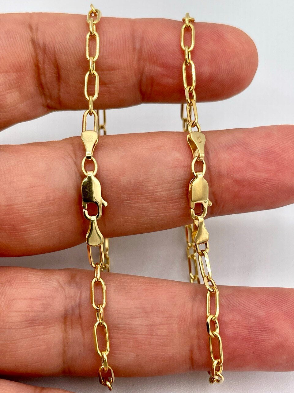 14K Solid Gold Cable Bracelet Chain, Real 14K Diamond-cut Gold Cable Link Bracelet, 3mm Thick 7.5" Lengths Cable Bracelet for Men/Women!