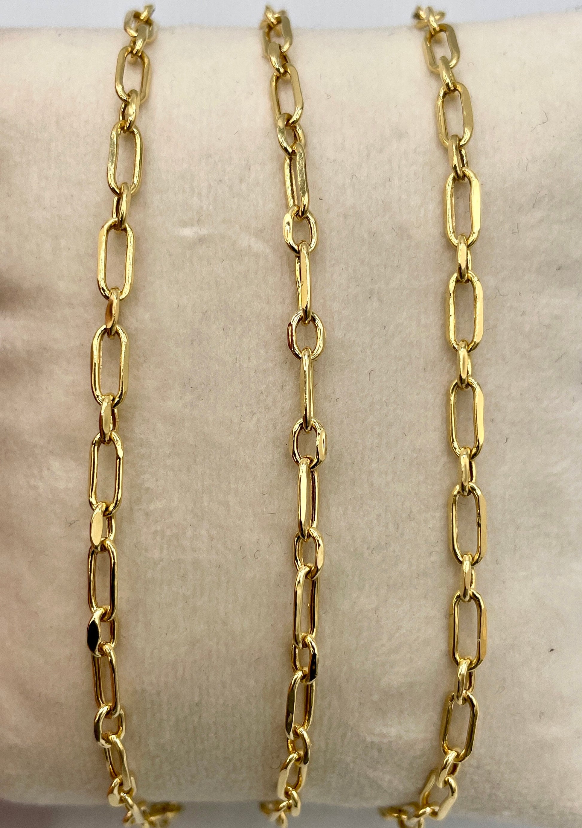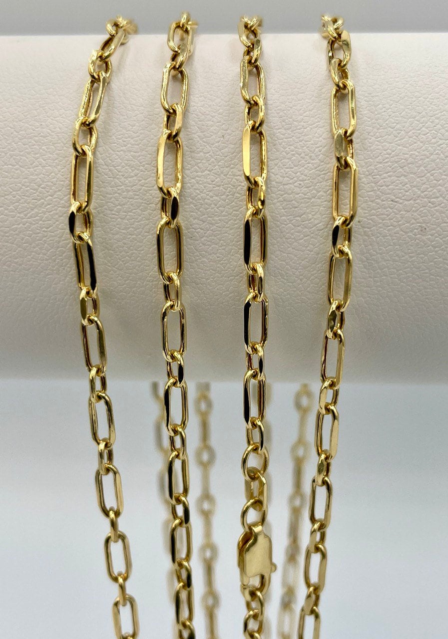 14K Solid Gold Cable Chain Necklace, Real 14K Gold Cable Link Diamond-cut Chain, 3MM Thick, Real 14K Gold Trending Chain for Men & Women!