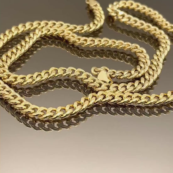 14K Solid Gold Curb Chain Necklace, Solid 14K Real Gold Curb Links Miami Cuban Chain for Men/Women, 5mm-thick Solid Gold Chain for Him/Her!