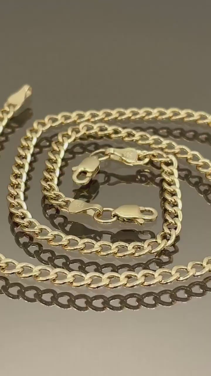 14K Solid Gold Curb Cuban Bracelet Chain, Real 14K Yellow Gold Bracelet, 3.2mm wide_7.5" Curb Links Bracelet for Men & Women, Birthday Gift!