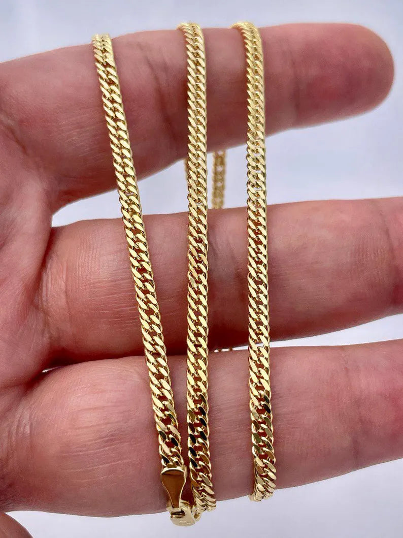 14K Solid Gold Curb Necklace,Real Gold,(3mm Width),Everyday Gold Chain,Unisex Gold Chain,Gift For Her/Him!