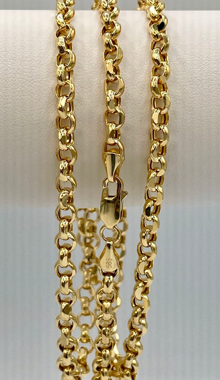 14k Solid Gold Rolo Chain Necklace/ 14K Yellow Pure Gold Rolo Links Chain 5MM, 22"- 26" Lengths/ Real 14K Gold Chain for Men & Women, Gift!