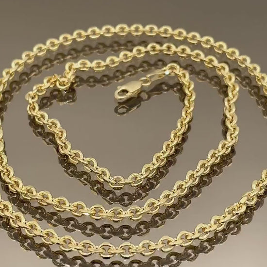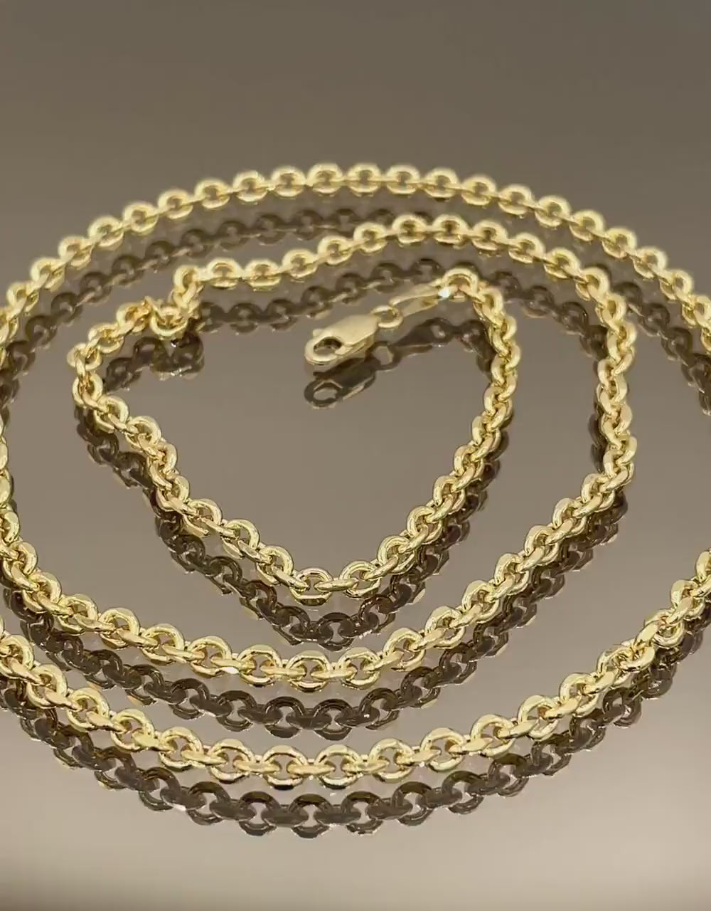 14K Solid Gold Rolo Chain Necklace,Pure 14K Solid Gold Rolo Diamond Cut for Women/Men, Heavy Gold Chain, 4MM Thick, Real 14K Yellow Gold!