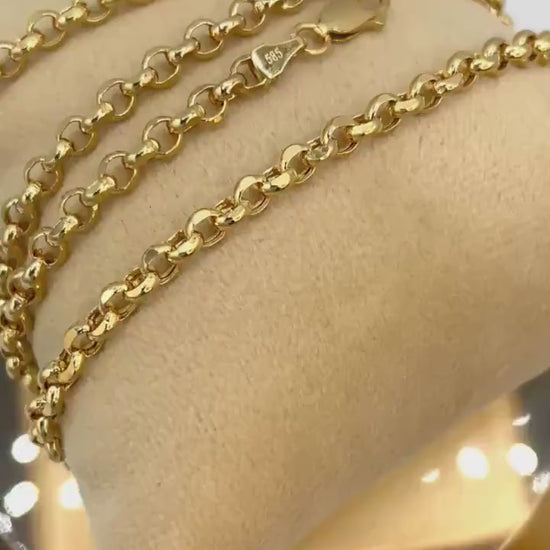 14K Solid Gold Rolo Necklace Chain, Real Gold Chain,(4mm) Thickness, Classic & Durable Design, Birthday Gift Her/Him!