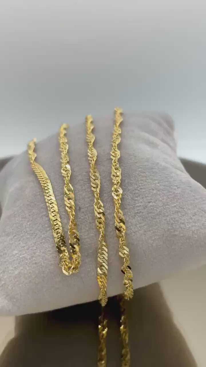Solid 18K Gold Singapore Chain Necklace – Elegant and Timeless Jewelry