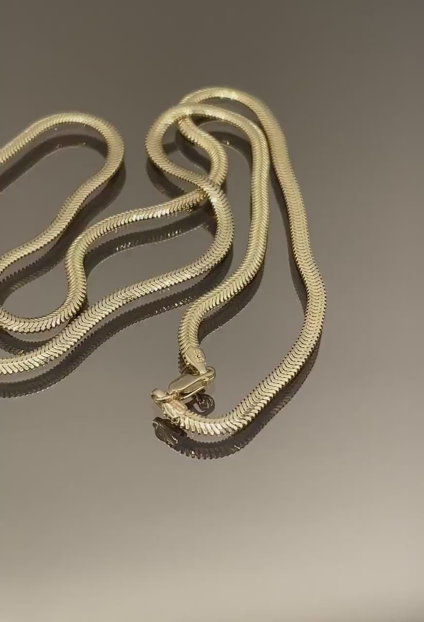 14K Solid Gold Snake Herringbone Necklace, Real 14K Yellow Gold Herringbone Chain, 3 MM Width, Solid Gold Chain for Women, Gorgeous Gift!
