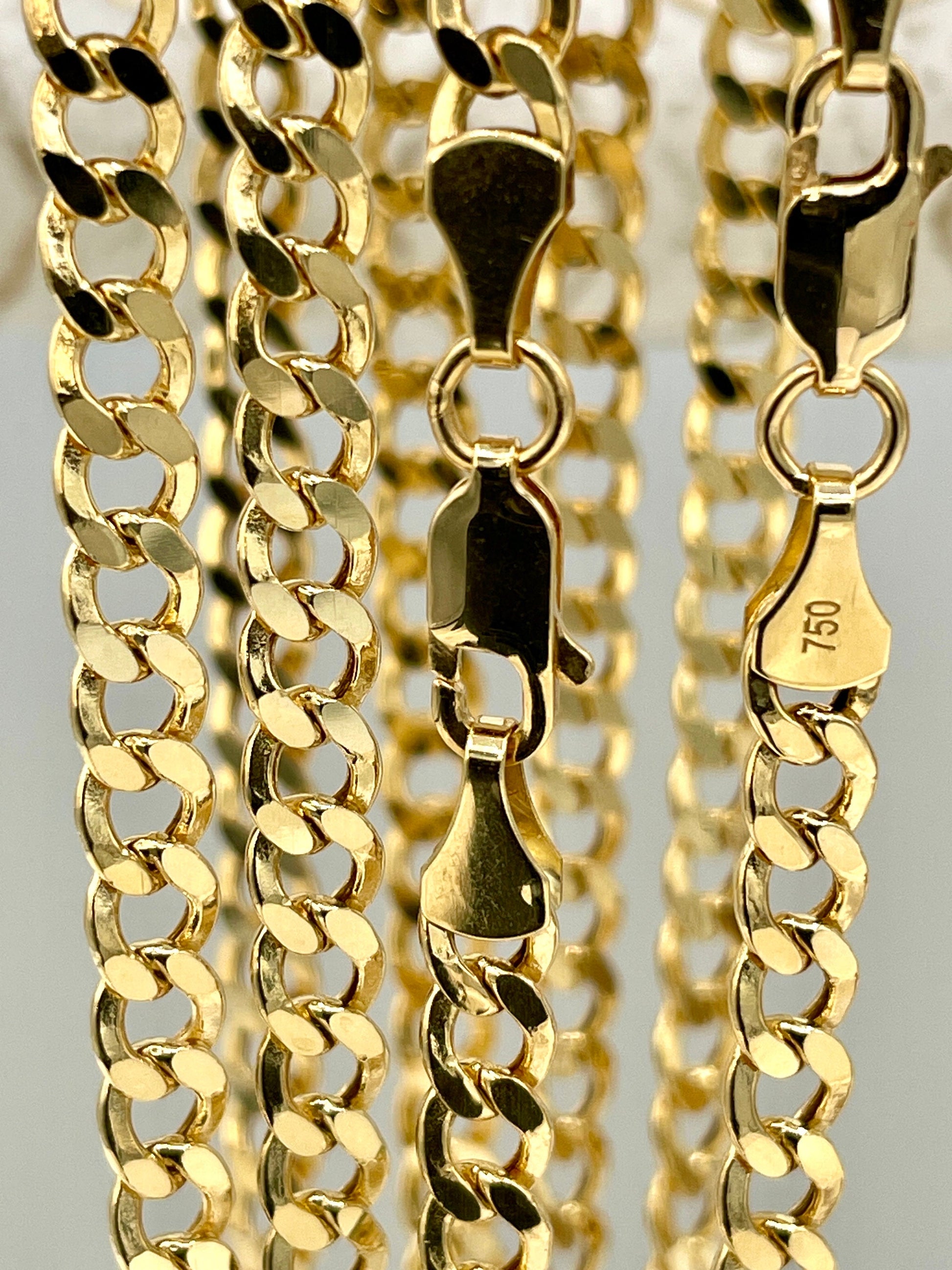 This 18K Solid Gold Curb Chain is a classic staple—blending sleek design with lasting durability. Ideal for those who appreciate bold elegance in everyday wear.