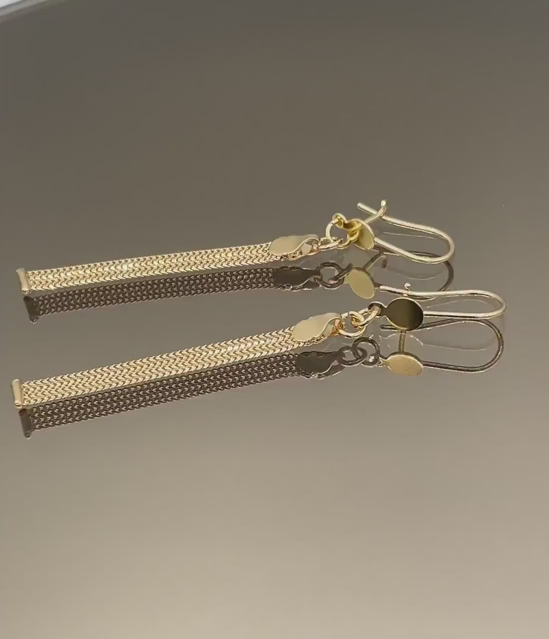 18K Gold Bismarck Earrings,Real Solid Earrings Gold,Yellow Gold4mmWidth 2.5"Length,Bismarck Earrings Link Chain,Birthday Gift,For Women/Girl