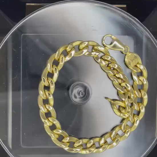 18K GOLD Bracelet Curb (7.4MM) 8" ,Christmas Gift, Anniversary Gift, Birthday Gift, For Her, For Him, Real Gold Bracelet Curb, ladies gift.