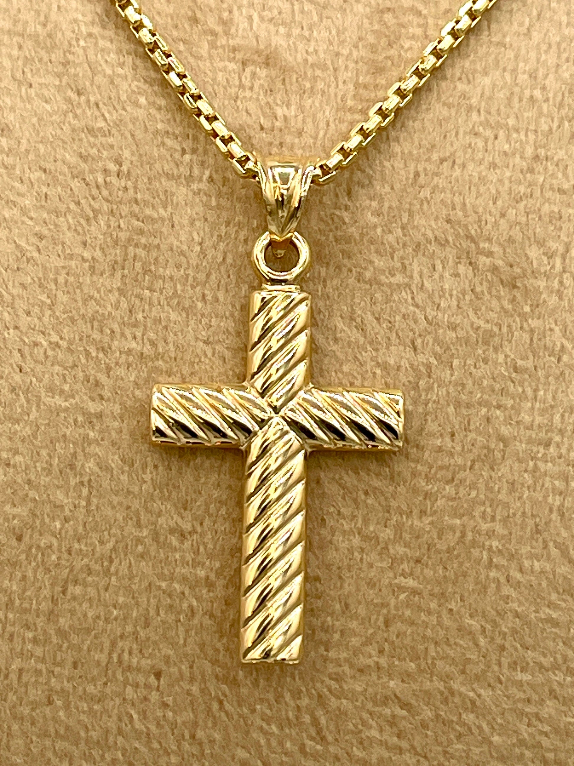 18K CROSS NECKLACE ROUND BOX CHAIN 20"22"24"(5.7gr6gr6.48gr)