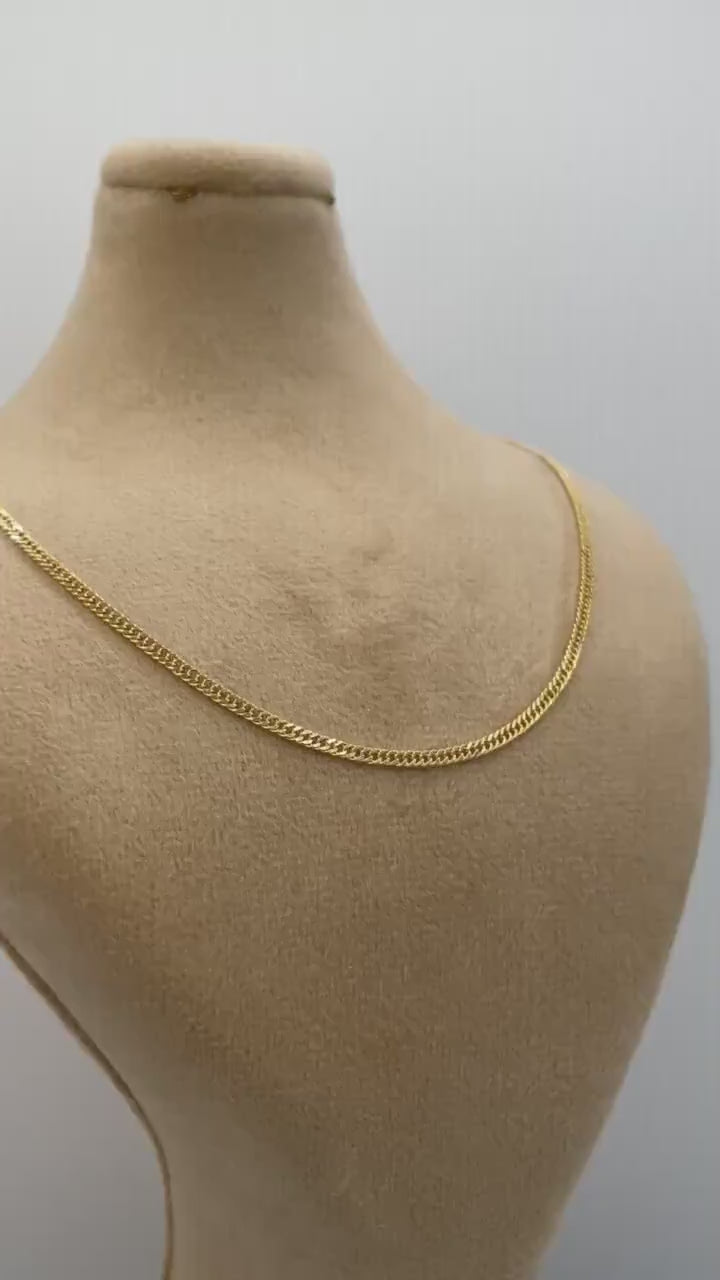 18K GOLD Double CURB NECKLACE (2.1mm)Solid Gold,Real Gold,Necklace Chain,For Her,For Him,Birthday Gift,Christmas Gift For Dad,Gift For Mom.