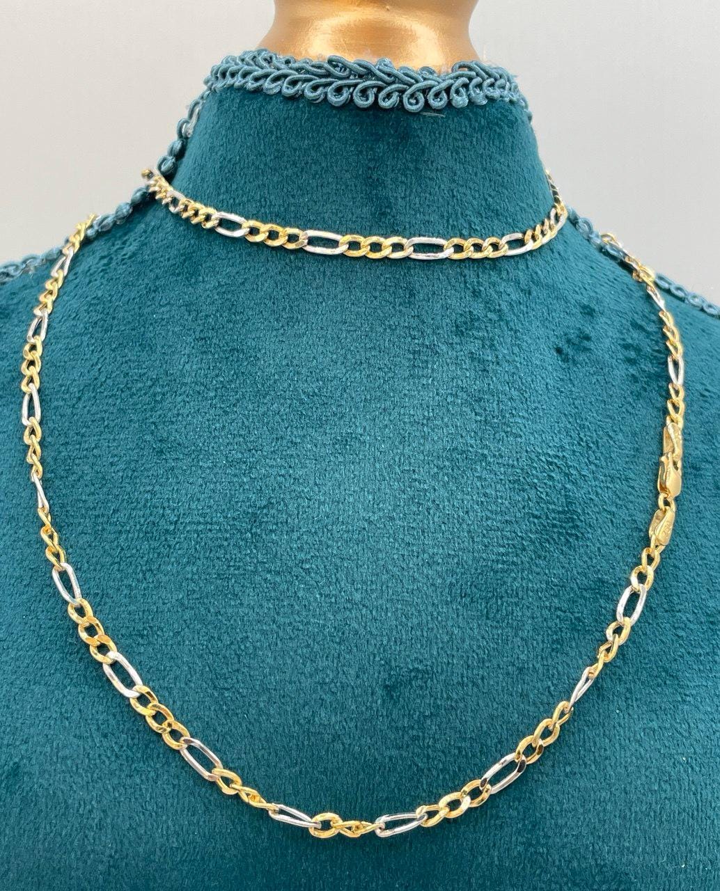 Guaranteed High-Quality 18K Solid Gold Two-Tone Figaro Chain
