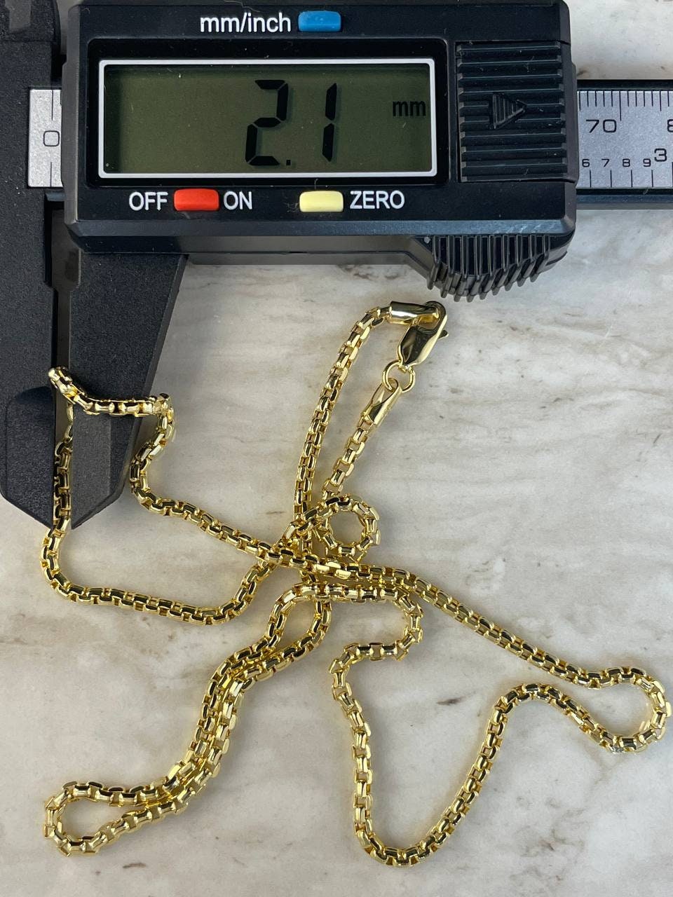 18k Gold Solid Box Chain Necklace ,18" 20",22",(2.1mm),Real Gold, Shiny Round Box chain, For Him, For Her, Birthday Gift, Christmas Gift.