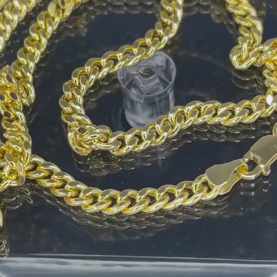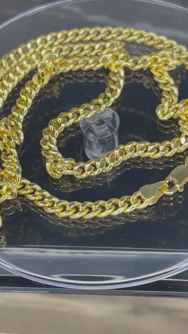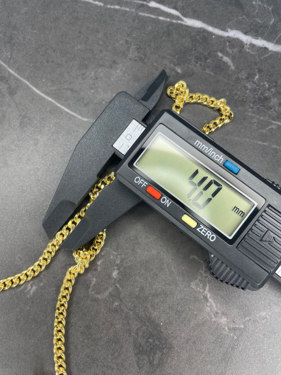 18k GOLD SOLID CURB (4MM) 22"24"26",Real Solid Gold, Christmas Gift, Anniversary Gift, Birthday Gift, For Him, For Her, Real 18k Gold.