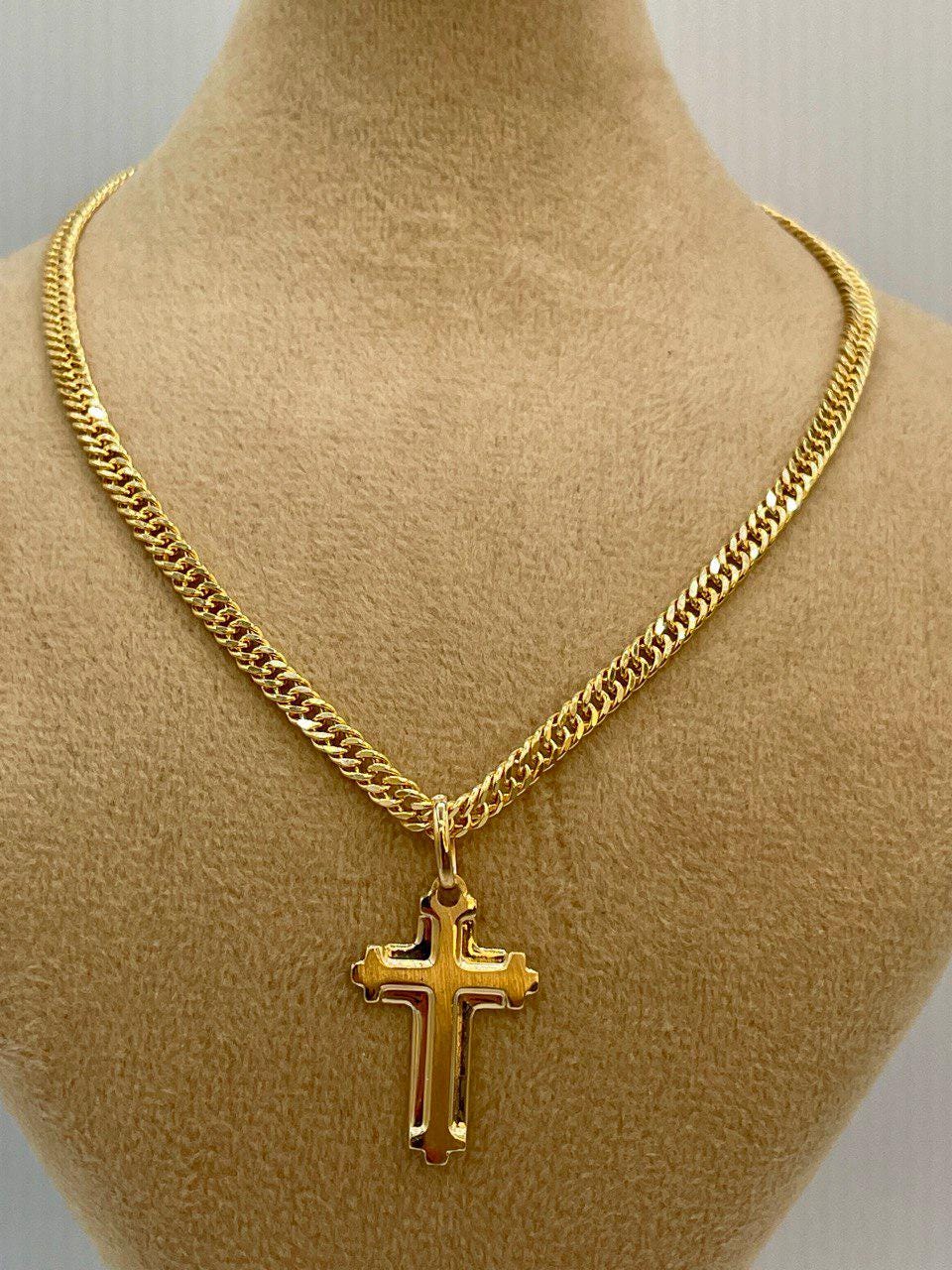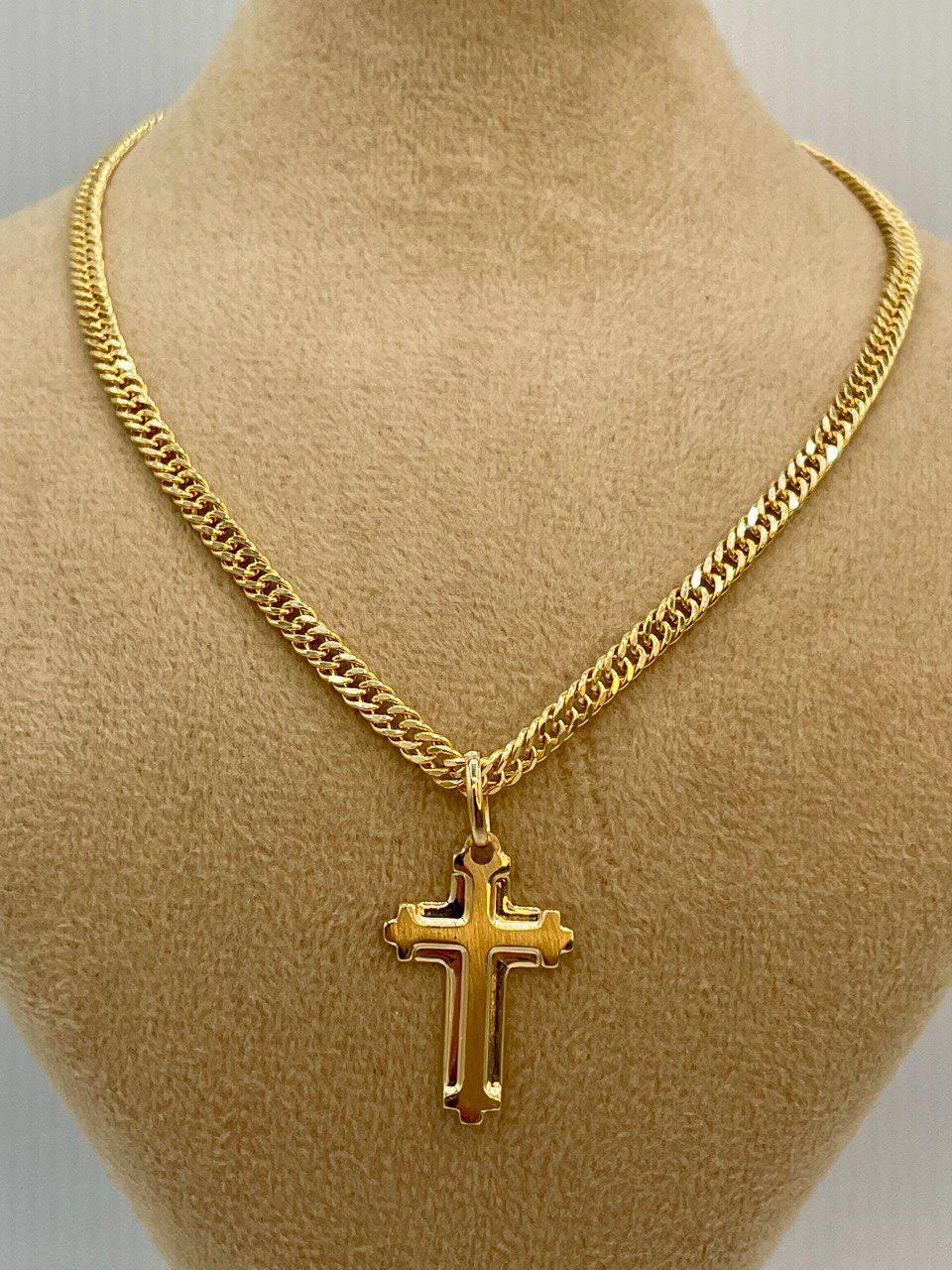 ✅ Style: Classic 18K Solid Gold Cross Necklace with Curb Chain