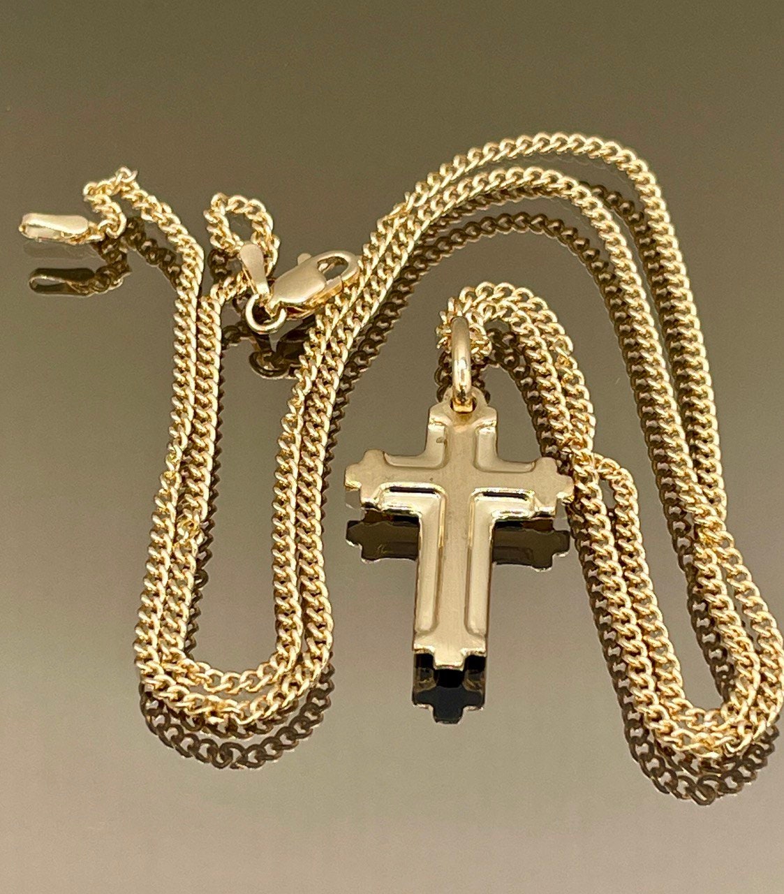 18k Solid Gold Cross Necklace ,Cross Necklace with 2mm Curb Chain ,Gold Cross Necklace , For Him, For Her ,Anniversary Gift ,Birthday Gift.