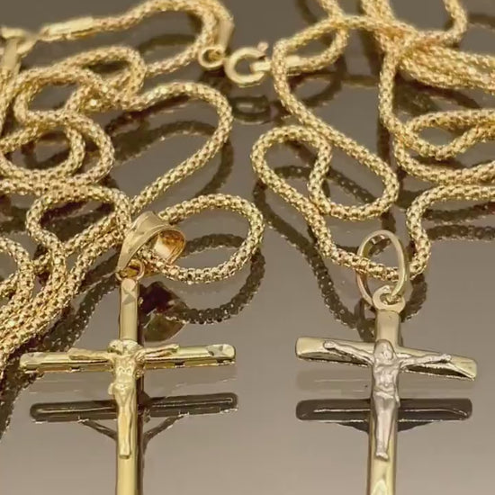 18K Solid Gold Crucifix Cross Necklace, 18K Real Gold Cross Pendant, Snake Chain, Elegant Unisex 18K Solid Gold Cross Necklace for Him/Her!