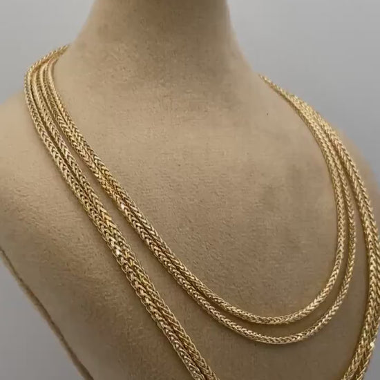 18K Solid Gold Franco Chain Necklace, Real 18K Gold Wheat Foxtail Chain, 2mm_1.7mm Solid Gold Chain,Gift for Him/Her, Birthday Gift!