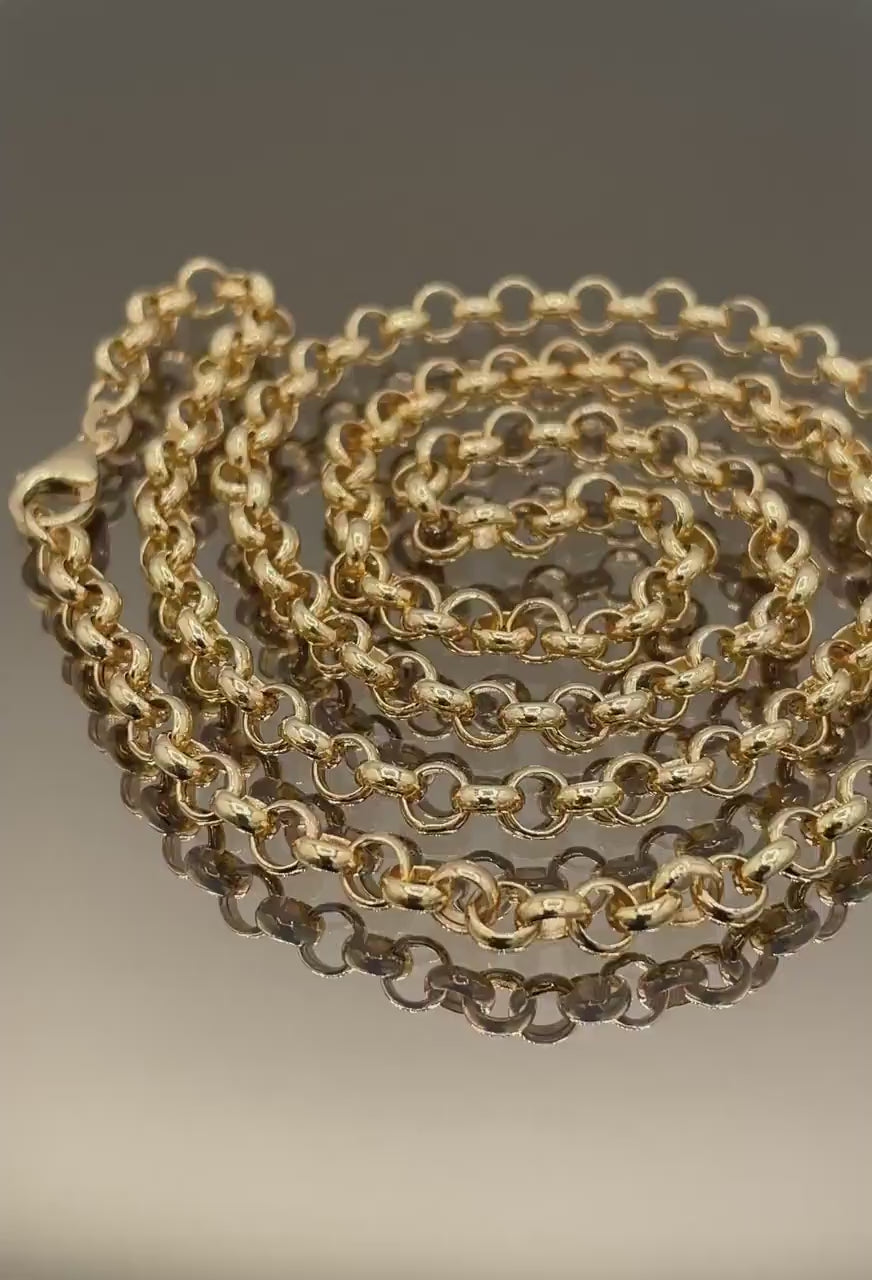 18K Solid Gold Rolo Necklace, Real 18K Gold Rolo Chain Necklace, Yellow Gold Necklace for Men/Women, 18K Gold Necklace 5 mm - 22"-24", Gift!