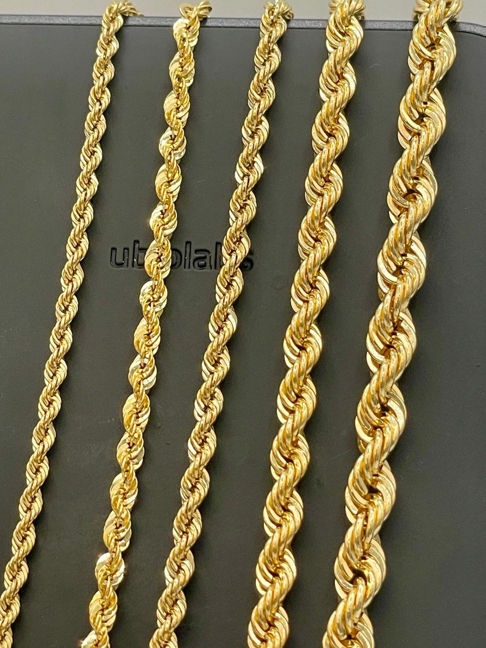 18K Solid Gold Rope Chain Necklace, Real 18K Yellow Gold Rope Link Chain, Diamond-Cut 2mm-5mm, 18"-24", Solid Gold Chain for Men & Women!