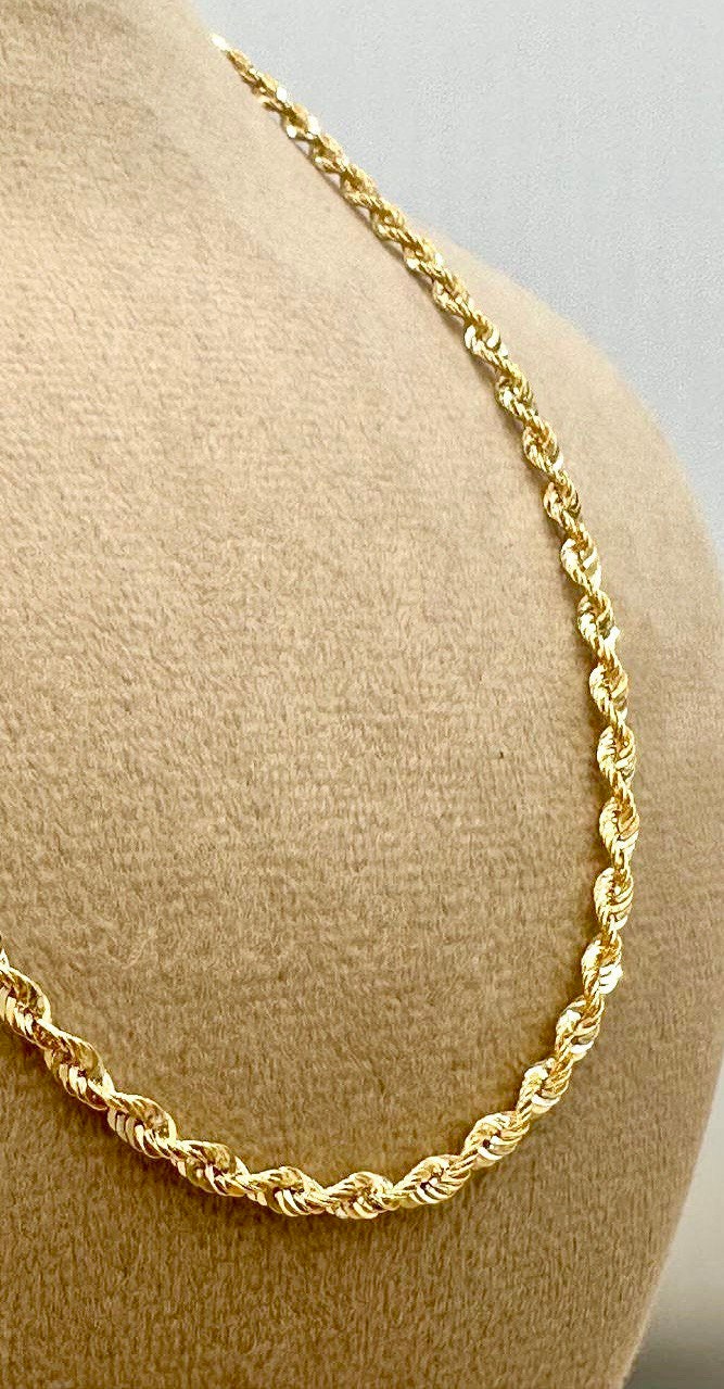 18KARAT GOLD ROPE CHAIN NECKLACE CHAIN YELLOW GOLD SOLID GOLD(2.6mm)THICK 24"LENGTH (4.34gr)WEIGHT DIAMOND CUT.