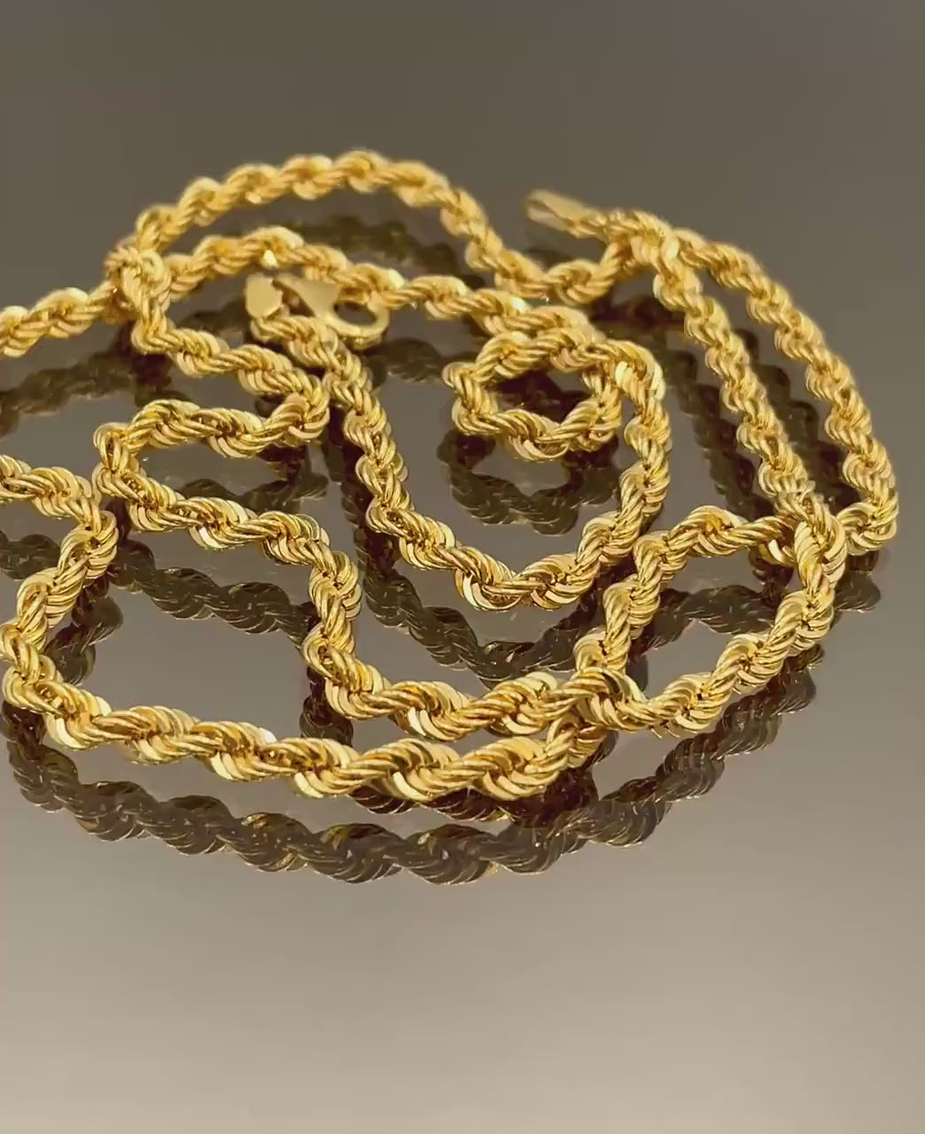 Solid Gold 18k Rope Chain, Chunky Gold Rope Chain,Real Gold Chain (4mm) Thickness, For Him/Her,Birthday Gift,Anniversary Gift.